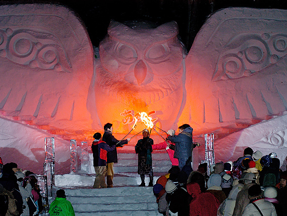 (当社の玄関口にも、『梟の手湯』として、北の大地の守護神「エゾシマフクロウ」に由来する、ニレの木の空洞にためたお湯がこんこんと湧き出ています)